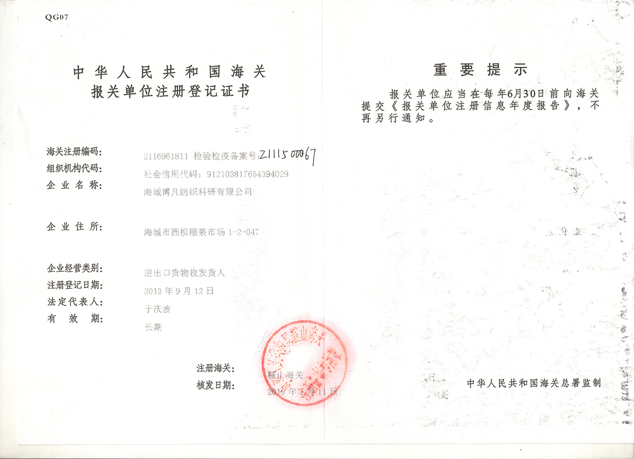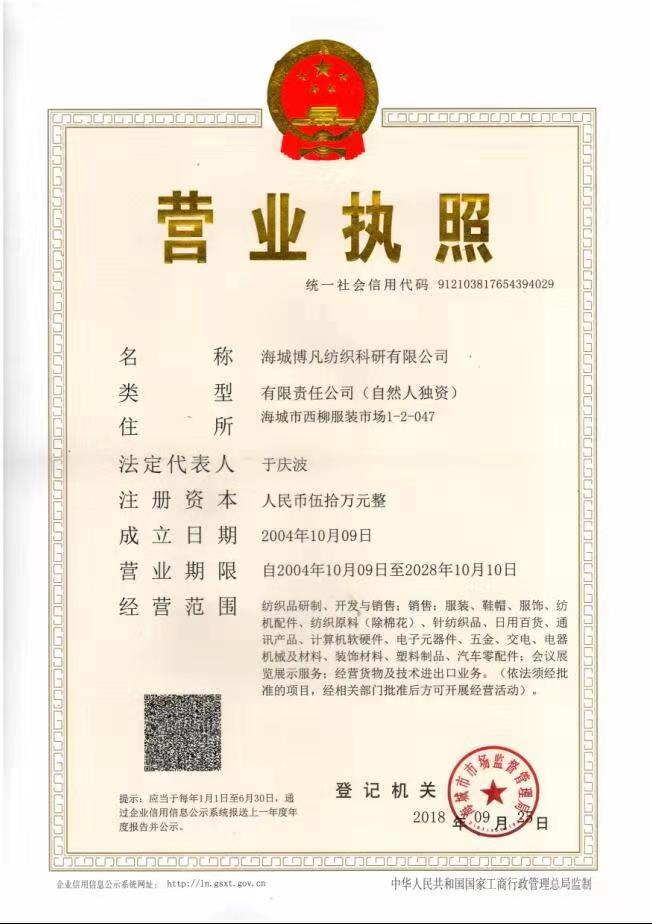 Company Haicheng Bofan Textile Technology Co., Ltd. Cellphone 139-0980-2920 TEL  0412-385-5949